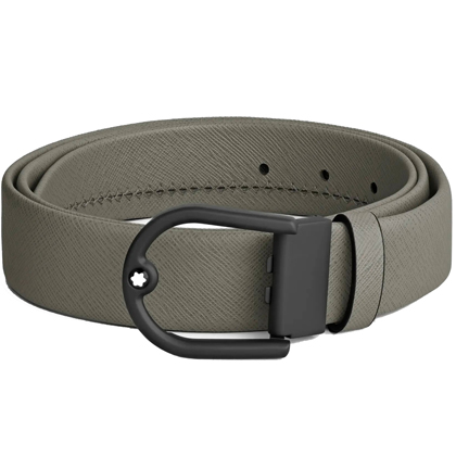 Кожаный ремень 35 мм из кожи серого цвета, пряжка в форме подковы от магазина премиальных ручек Premium Pens в Твери.